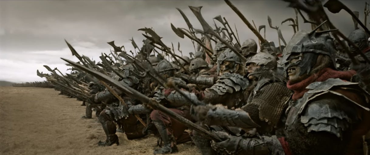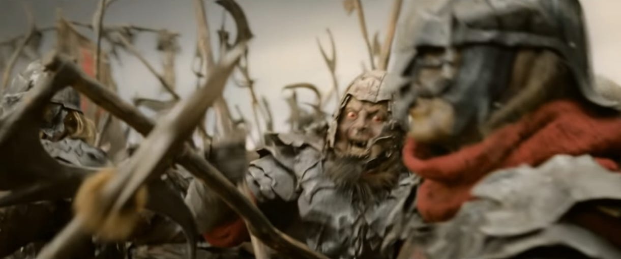 Props to these orcs for not bailing and instead staring their own deaths in the face. Or maybe they’re just confused about the assignment—the orc second from the right is holding an oar.