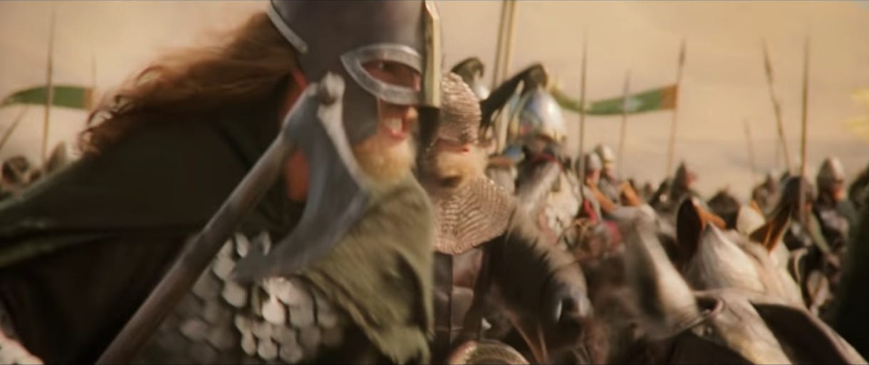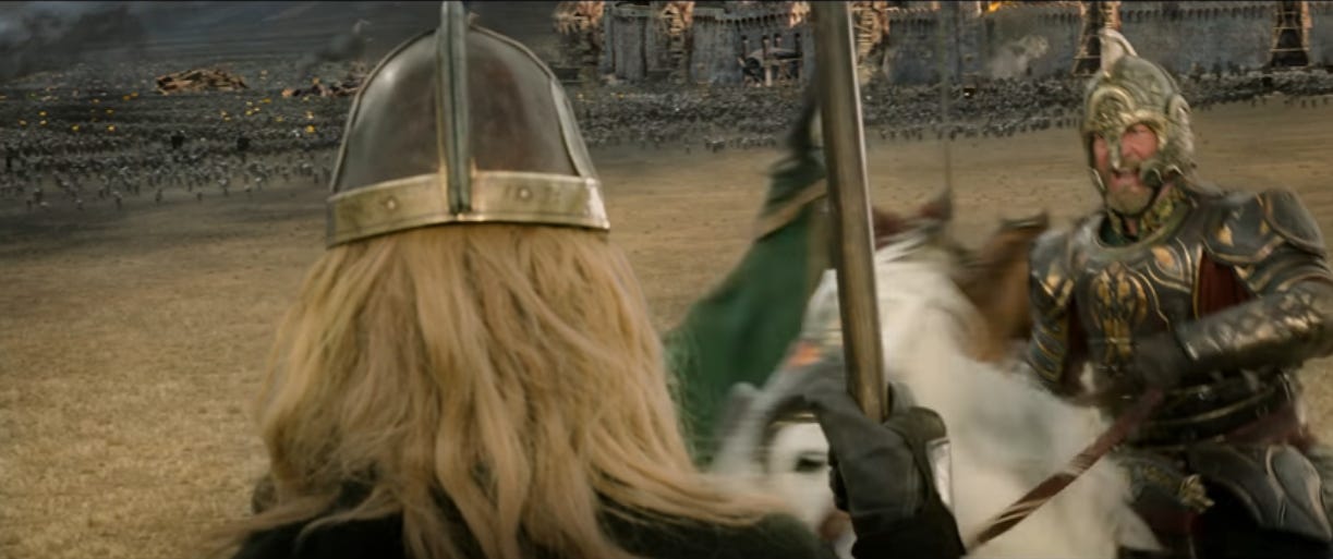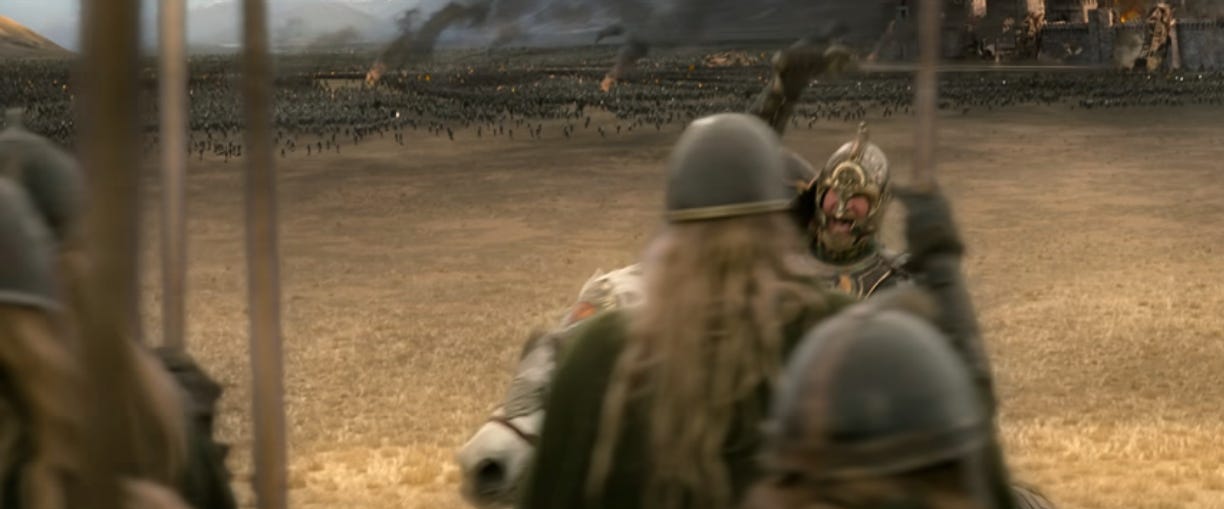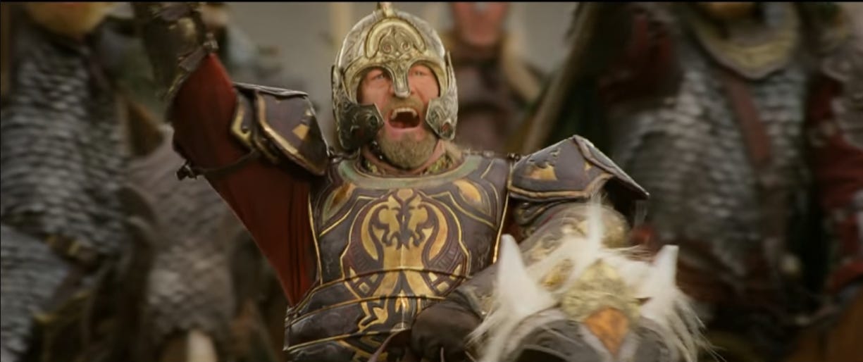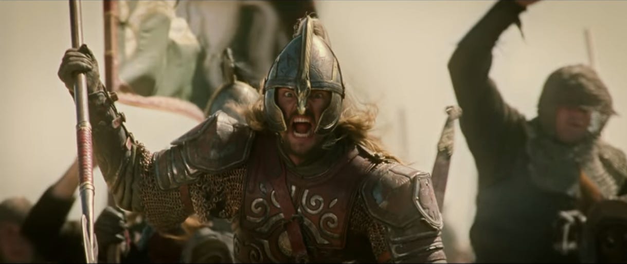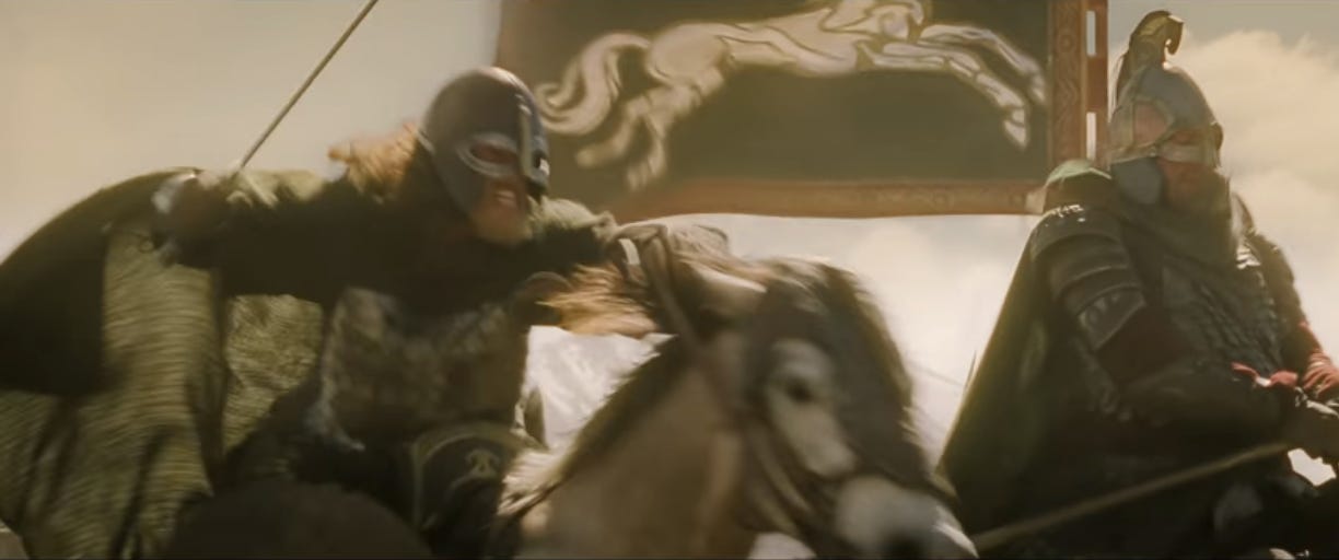 If this ends up being popular, I’ll write about the next Rohirrim sequence, when Théoden’s one strategy—”death!”—runs into a wall.