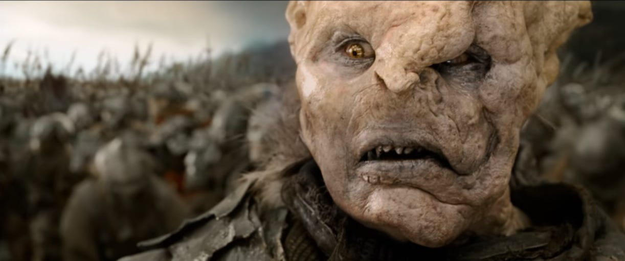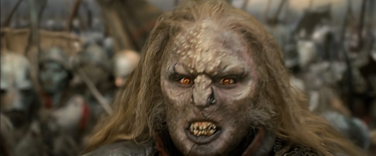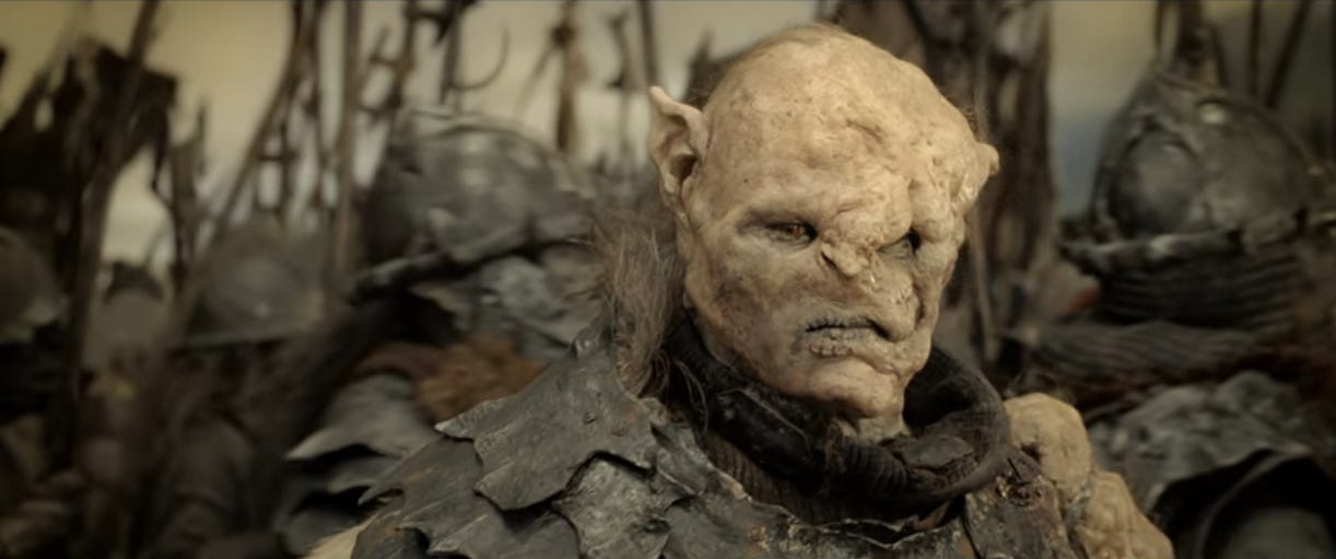 2:33:22: You don’t really notice until you’re pausing every few seconds to write about this scene, but the costume and makeup on the orcs is crazy good. They’re all distinct.