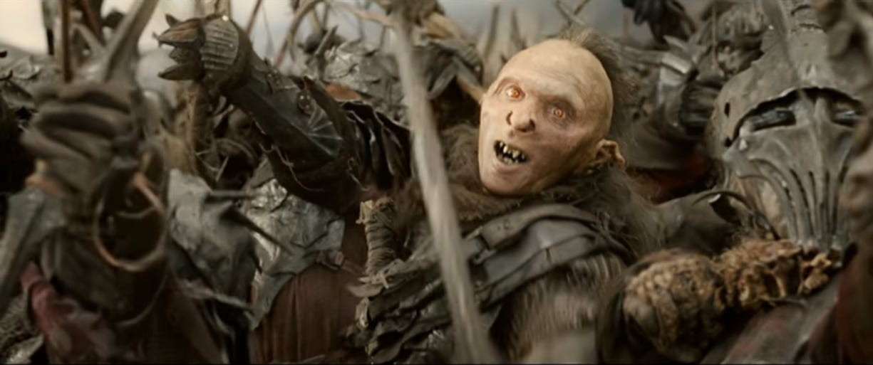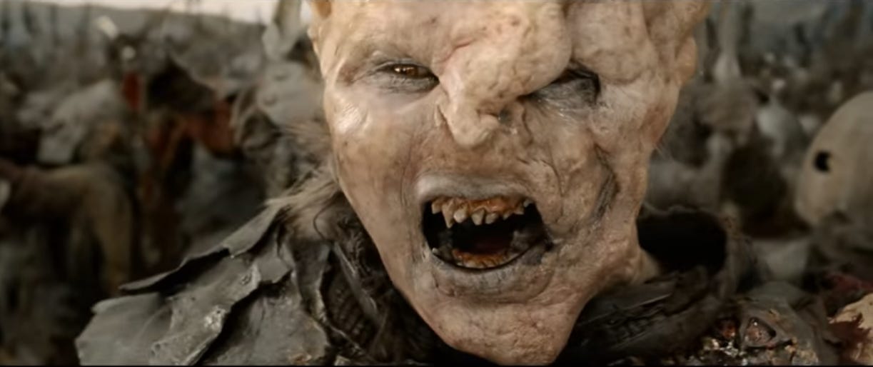 I wish we’d gotten a scene where this orc squares off against The Donut That Rides. They could’ve fought over the last drumstick.